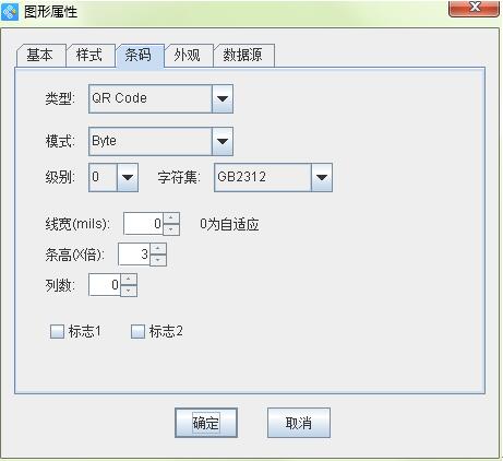 再選擇“條碼”選項卡,選擇條碼類型為:qr code,模式為:byte(這種模式支持全字符集,包括漢字和網址);
