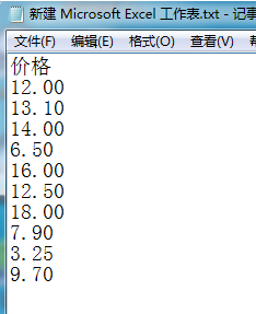 得到txt文本文件,價格欄中的數值就是帶有小數點后2位的: