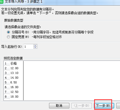 將剛才保存的txt文本數據導入到新的excel表中,根據導入向導提示選擇適合的選項(前面的幾步保持默認設置即可),注意最后一步要選擇“文本”數據類型。